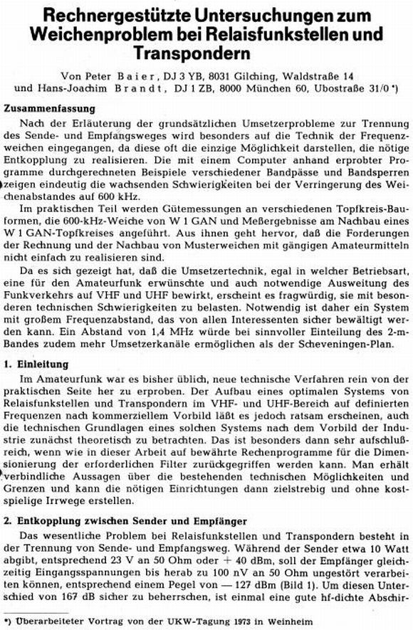 Vortrag auf der UKW-Tagung in Weinheim 1973