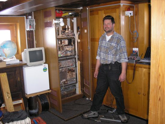 Der Geräteschrank mit Andy, DB5FA, am 3. Juni 2006