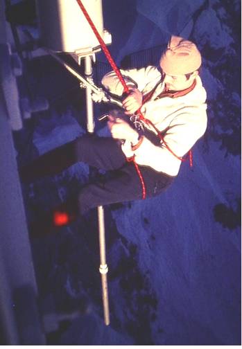 Bernd, DL9ZD, bei der Antennenmontage, 2000 m über Grund