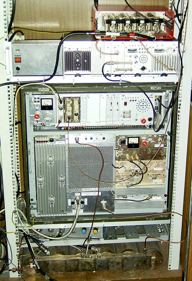 Das Reserverelais (70 cm) mit Weiche (darüber) im Rack