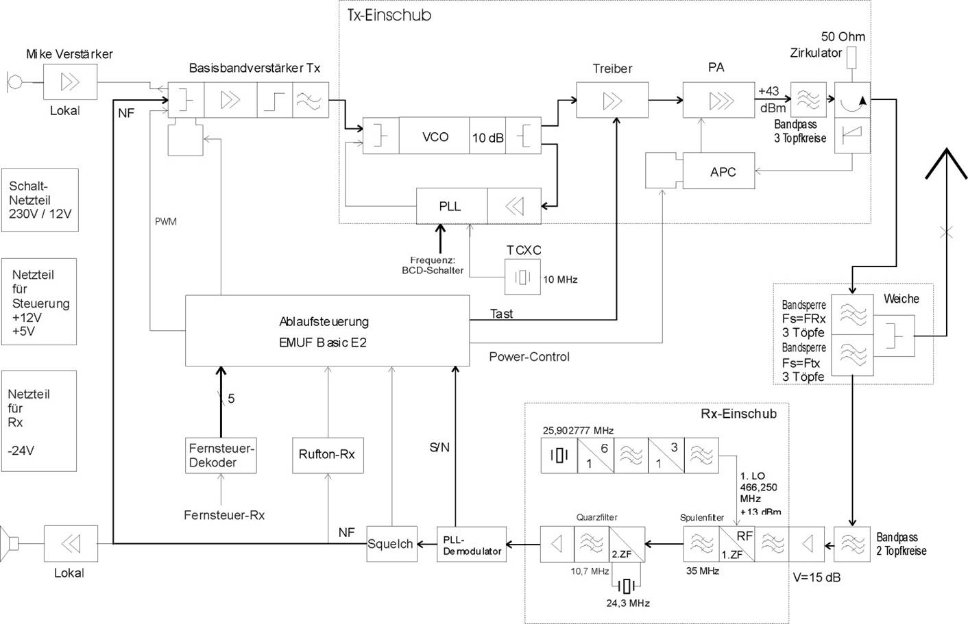 Das umgebaute Richtfunkgerät FM/DL 400 als Relais
